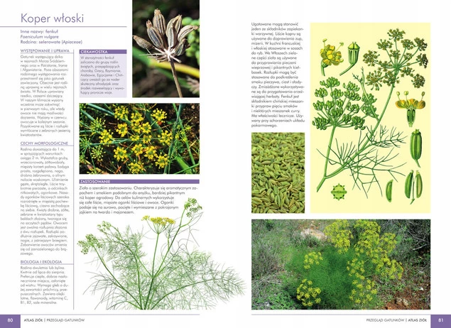 Jadalne zioła, traktowane jako uzupełnienie codziennego jadłospisu, mogą się stać inspiracją do wzbogacania codziennych dań, poszukiwania nowych receptur, a także powrotu do zapomnianych potraw staropolskich. Zamieszczone w książce charakterystyki i fotografie 120 roślin dziko rosnących zostały ułożone według spisu alfabetycznego polskich nazw gatunkowych. W atlasie uwzględniono zarówno rośliny popularne, jak i mniej znane, wykazujące szczególne wartości kulinarne i zdrowotne.