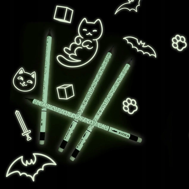 Różnorodne, zabawne wzory to nie jedyna wyjątkowa cecha tych niezwykłych ołówków – w ciemnym pomieszczeniu świecą one wyraźnym blaskiem!