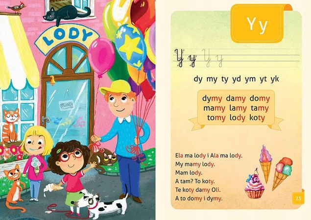 W całej książce zastosowano wyraźny podział na sylaby, przykładowe słówka, proste zdania, dzięki czemu dziecko szybko nauczy się czytać płynnie. Książka została opracowana z najwyższą dokładnością, starannością, dbałością o wartość merytoryczną. Zajmujące czytanki i wspaniałe, kolorowe, zabawne ilustracje są dodatkowym atutem książki. Dzięki temu każde dziecko z przyjemnością będzie uczyło się czytać!