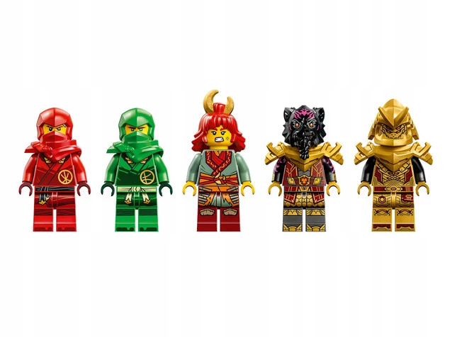 - Pięć minifigurek -- ten zestaw NINJAGO(R) zawiera Kaia uzbrojonego w dwie katany, Wyldfyre, imperialnego łowcę szponiastych z mieczem i Lorda Rasa ze złotym młotem