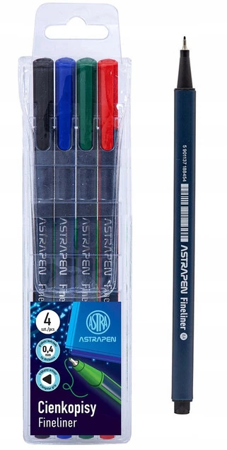 Złóż zapytanie o cenę hurtową produktu |Cienkopisy trójkątne 0,4mm 4 kolory ASTRA