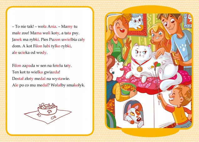 Moje czytanie sylabowe, czyli zeszyt małego ucznia Wyzwanie dla bohatera, który pierwszych czytanek się nie boi! Krótkie historyjki o Kubie i jego rodzinie, oprawione zabawnymi ilustracjami z elementami do kolorowania, pomogą dziecku ćwiczyć umiejętność czytania na poziomie podstawowym. W tekście użyto tylko 23 liter, a słowa podzielono na sylaby, wyróżniając je kolorem - zgodnie z metodą sylabową. Świetna rozgrzewka przed prawdziwą lekturą! Pierwsze kroki i wielkie susy w cudownym świecie nauki!