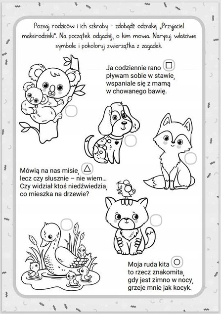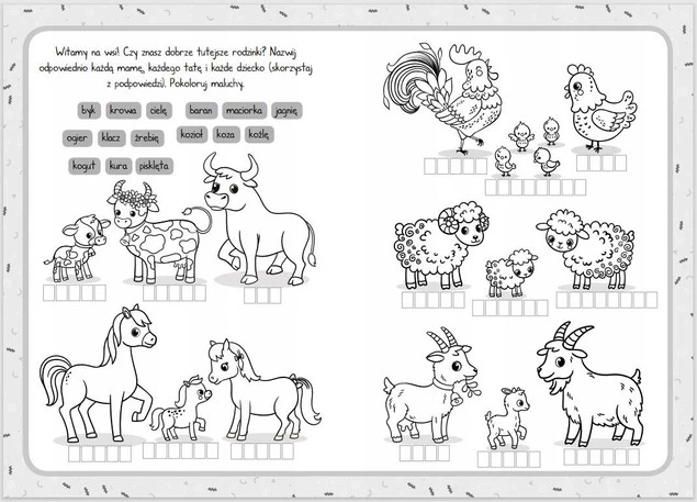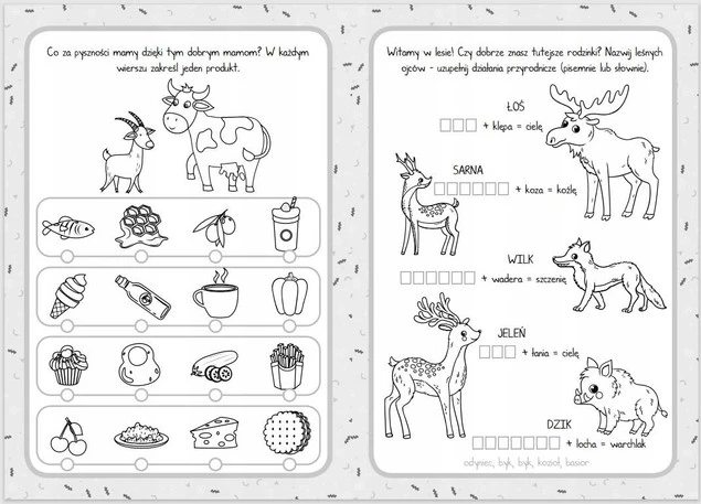 Moje rodzinki, czyli rozrywkowy zeszyt małego ucznia Niezbędnik każdego miłośnika zwierząt! Niepowtarzalne drzewa rodowe i nietypowe rankingi, wierszowane zagadki, obrazkowe wyszukiwanki oraz cała gama kreatywnych zabaw pokazują różnorodność świata, poszerzają wiedzę oraz ćwiczą spostrzegawczość. Są doskonałą gimnastyką dla mózgu, a także świetną przygodą! Pierwsze kroki i wielkie susy w cudownym świecie nauki!