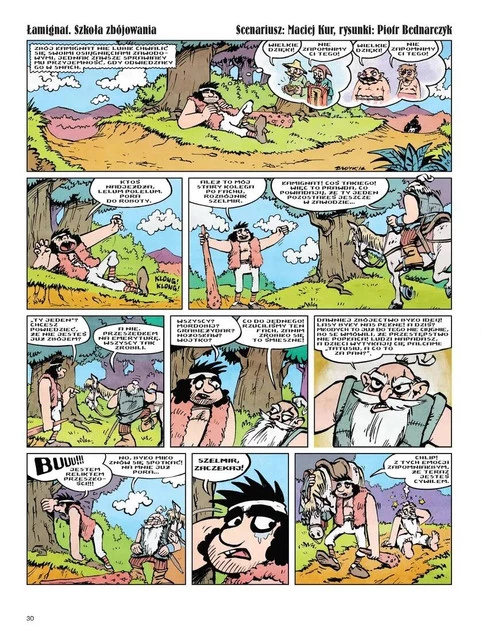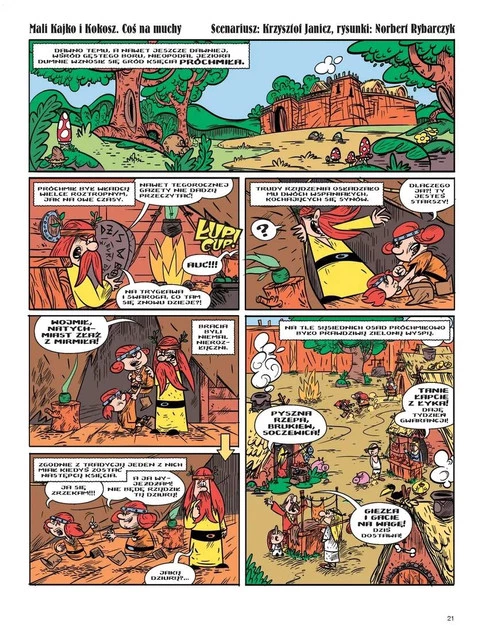Wznowienie albumu z nową okładką autorstwa Sławomira Kiełbusa. "Kajko i Kokosz" Janusza Christy (1934-2008) to jedna z najsławniejszych polskich serii komiksowych. W przezabawny sposób opowiada o przygodach dwóch słowiańskich wojów - mądrego i uczciwego Kajka oraz silnego i samolubnego Kokosza - służących kasztelanowi Mirmiłowi. Dwaj przyjaciele dzielnie bronią Mirmiłowa przed atakami niecnych zbójcerzy, raz po raz wpadając w tarapaty. "Kajko i Kokosz - Opowieści z Mirmiłowa" to oficjalna kontynuacja tej kultowej serii. Albumy zawierają po kilka krótkich historyjek, tworzonych przez znanych polskich rysowników. Komiksy tworzone są w różnych stylach, a ich głównymi bohaterami często są drugoplanowe postacie oryginalnej serii. Zawsze jednak pozostają wierne duchowi oryginalnych komiksów Janusza Christy, z ich pełną humoru i przygód akcją oraz cartoonową kreską. Tom "Obłęd Hegemona" zawiera cztery historyjki autorstwa Piotra Bednarczyka, Krysztofa Janicza, Sławomira Kiełbusa, Macieja Kura, Norberta Rybarczyka i Tomasza Samojlika. Hegemon nagle zacznie zachowywać się nad wyraz spokojnie i uprzejmie, przez co zbójcerze zaczną podejrzewać, że ich ukochany wódz popadł w obłęd. Kasztelan Mirmił obejmie ochroną wszystkie okoliczne zwierzęta, co bardzo nie spodoba się Krwawemu Barnabie, a na dodatek smok Miluś wpadnie w pułapkę. Cofniemy się w czasie do dzieciństwa Kajko i Kokosza i poznamy pewnych małych mieszkańców grodu. Zbój Łamignat za namową Jagi postanowi założyć szkołę, w której będzie uczył dzieci swojego fachu Wraz z tym albumem ukazuje się także wznowienie tomu "Łamignat Straszliwy" z nową okładką autorstwa Sławomira Kiełbusa oraz zupełnie nowy kolejny tom serii "Rozróby i romanse".