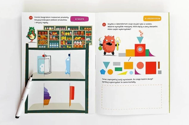 Różnorodne zadania przygotowują do nauki pisania i liczenia, rozwijają koncentrację i spostrzegawczość, a także ćwiczą pamięć wzrokową i orientację w przestrzeni.