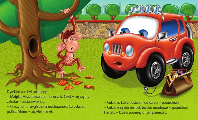 Poczytaj o sympatycznym czerwonym samochodziku i jego przyjaciołach. Dowiedz się, kogo leczył weterynarz Franek.