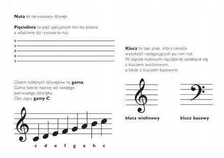 Zeszyt ze specjalnie poszerzoną pięciolinią, idealny dla przedszkolaków i uczniów klas młodszych. Na wewnętrznych stronach okładki w sposób przystępny przekazane zostały informacje o nutach, o sposobie ich zapisywania, długości i wysokości dźwięku.