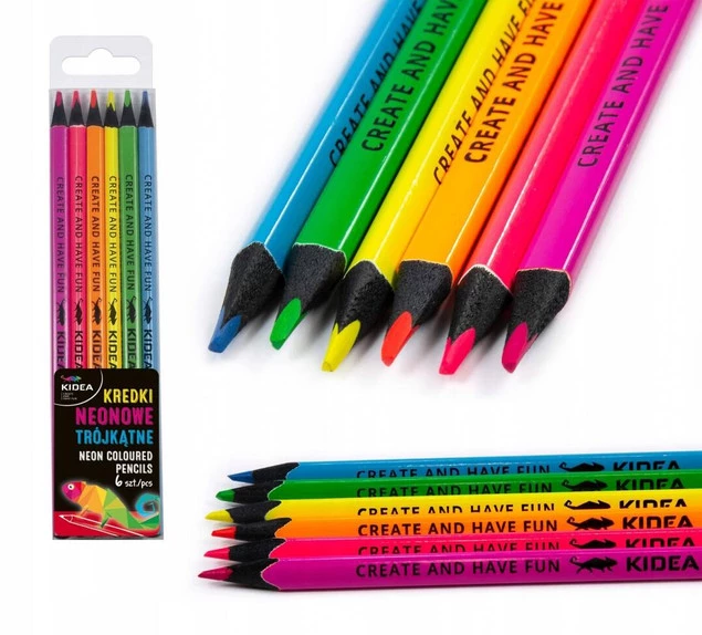 Kredki neonowe trójkątne 6 kolorów KIDEA (KNT6KA)