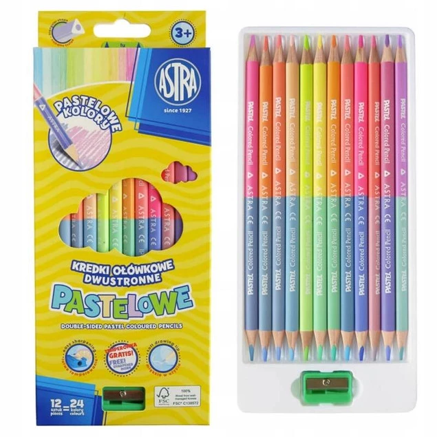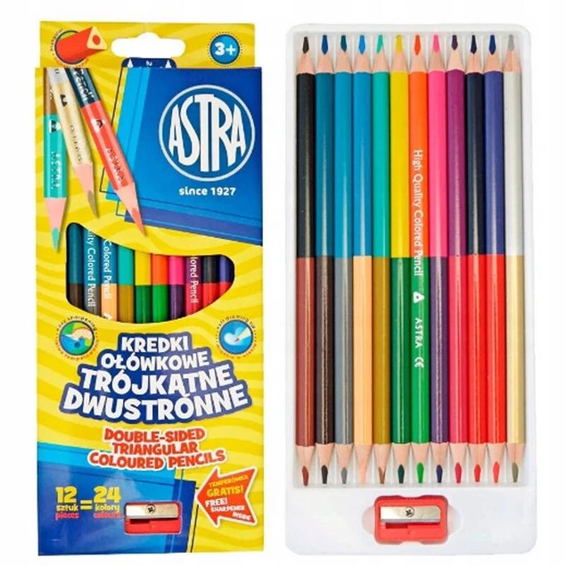 Złóż zapytanie o cenę hurtową produktu |Kredki ołówkowe trójkątne dwustronne 12=24kol ASTRA