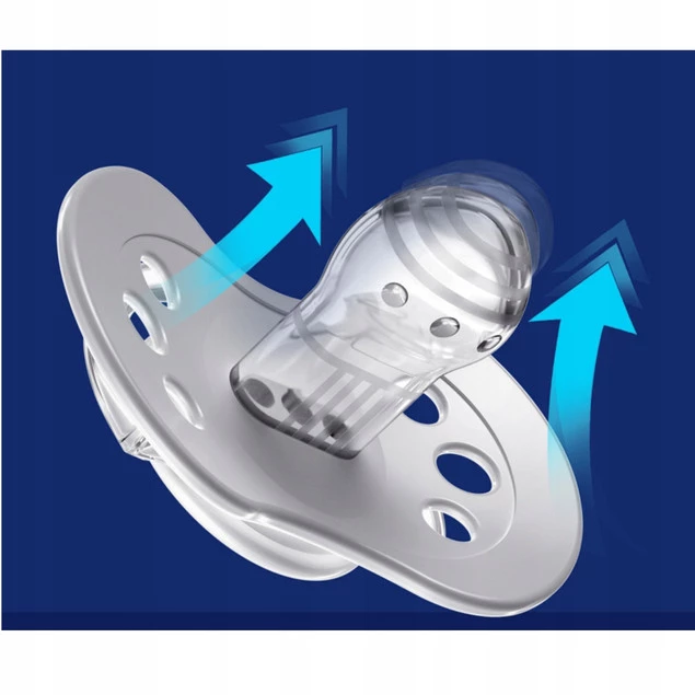 Profilowany kształt umożliwia dziecku swobodne oddychanie przez nos; bezpieczny surowiec, z którego jest wykonana, nie zawiera bisfenolu A.