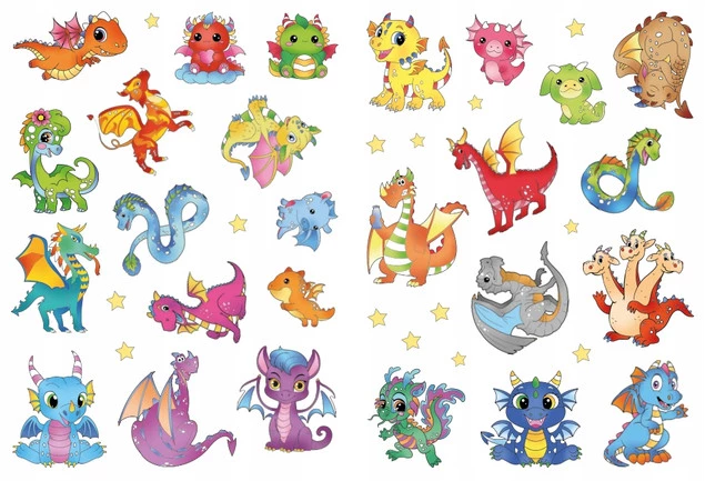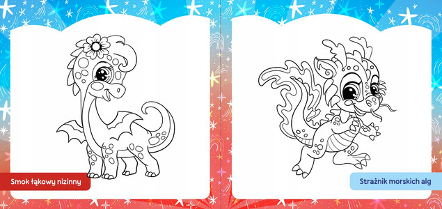 MALOWANKI KOLOROWANKI Z NAKLEJKAMI - SKRZAT:MALOWANKI KOLOROWANKI Z NAKLEJKAMI KOLOROWANKA Z TAUAŻAMI SMOKI FLUO