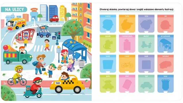 W Mieście Książeczka z okienkami 100 okienek 100 słów Aksjomat