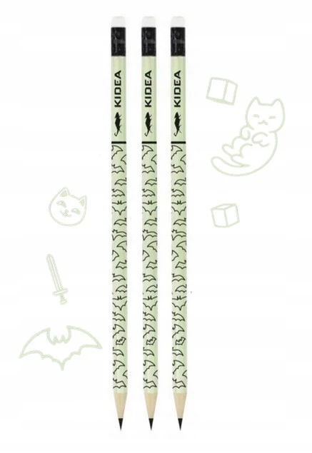 OŁÓWEK Z GUMKĄ ŚWIECĄCY W CIEMNOŚCI HB KIDEA (3 szt.)