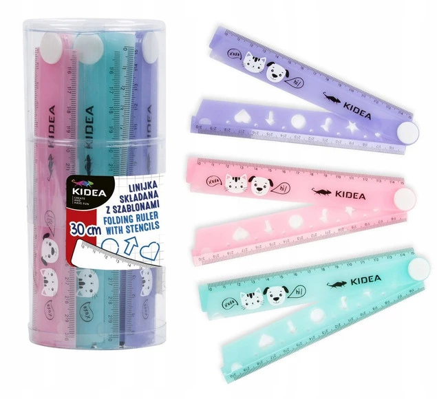 Linijka składana z szablonami Kidea w czterech kolorach:
