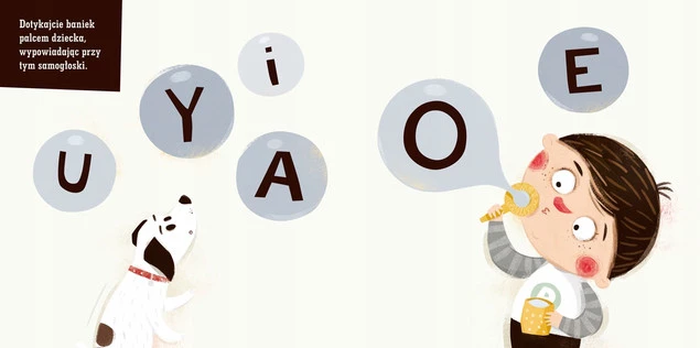 Na kartach tej małej książeczki znajdziecie swojego ulubionego bohatera wykonującego czynności, które cieszą każdego malucha, a wszystko to w połączeniu z dźwiękami ważnymi dla początków rozwoju mowy: samogłoskami, prostymi sylabami i onomatopejami.