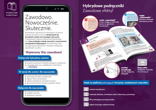 - Publikacja łączy tradycyjny papier z materiałami elektronicznymi dostępnymi na platformie edukacyjnej.