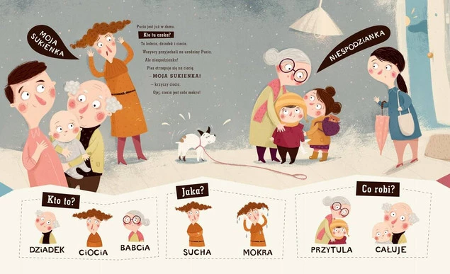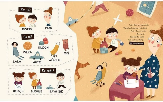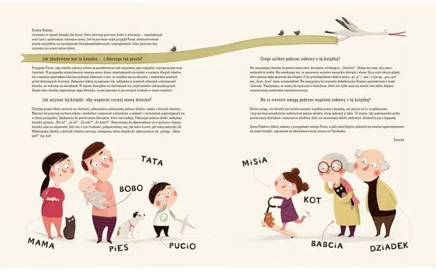 Celowo prosta w formie i wzbogacona pięknymi ilustracjami książka w naturalny sposób wspiera rozwój mowy dziecka.