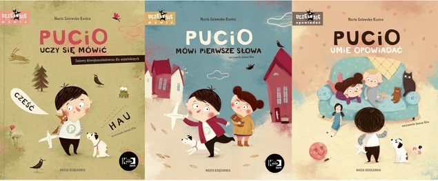 "Pucio mówi pierwsze słowa" to piąta po "Wierszykach ćwiczących języki", "Z muchą na luzie ćwiczymy buzie", "Zeszytowym treningu mowy" oraz "Pucio uczy się mówić" książka z serii "Uczę się: mówić, wymawiać, opowiadać".