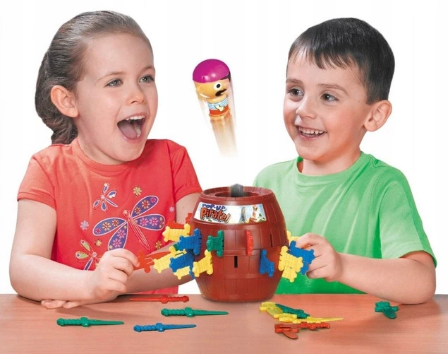 Wyjątkowa gra zręcznościowa Beczka Pirata TOMY zapewni wspaniałą rozrywkę każdemu rozgrywającemu, bez względu na wiek. Pyszna zabawa i duża porcja śmiechu gwarantowane! Wkręćcie przebiegłego pirata do beczki i rozpocznijcie pełną emocji rozgrywkę. Zadaniem każdego z graczy jest umieszczenie mieczy w wybranym kolorze w otworach w beczce. Gdy traficie na nieodpowiedni otwór dźgnięty bronią wściekły pirat wystrzeli z beczki niczym z procy. Gracz który spowoduje wyskok przegrywa. Odrobina szczęścia i sprytu pomogą Wam pokonać pewnego siebie wilka morskiego.