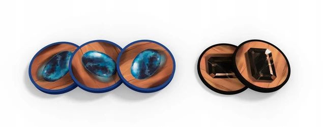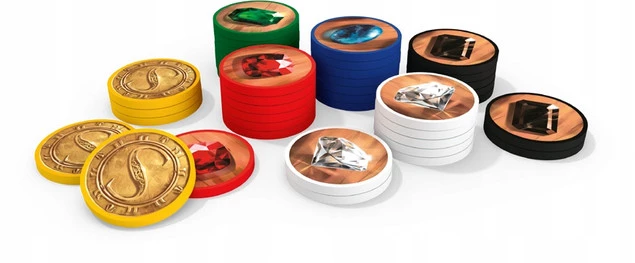 - 40 żetonów (7 szmaragdów, 7 szafirów, 7 diamentów, 7 onyksów, 7 rubinów, 5 złotych monet)