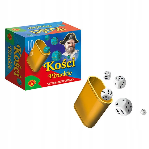 Gra w kości to jedna z najstarszych i najbardziej znanych gier na świecie. Swą popularność zawdzięcza prostym zasadom i prostym rekwizytom. Gra posiada wiele wariantów, z których każdy jest atrakcyjny i emocjonujący, a wygrana w nich zależy zawsze od szczęśliwych rzutów kośćmi. Opakowanie "Kości pirackie travel" umożliwia łatwe jej przenoszenie i rozgrywkę w różnych warunkach.