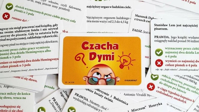 Kukuryku Czacha DymiRewelacyjna gra CZACHA DYMI to zabawa dla całej rodziny. Czacha Dymi jest nie tylko grą planszową, ale też kopalnią ciekawych, zaskakujących i śmiesznych informacji. Poza wiedzą, w grze przyda się odrobina szczęścia, taktyki i inwencji. Po drodze czekają na Ciebie roszady, przestoje i podchwytliwe pytania, od których czacha dymi! Zawartość:
