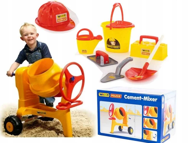 Mnóstwo fantastycznej zabawy z zestawem Betoniarka i narzędzia budowlane do piasku