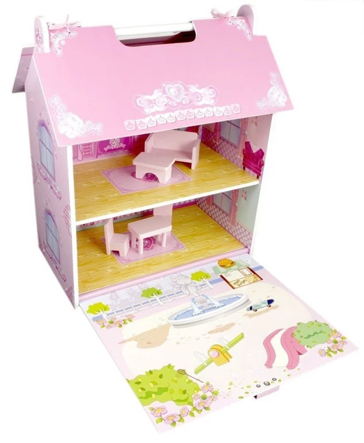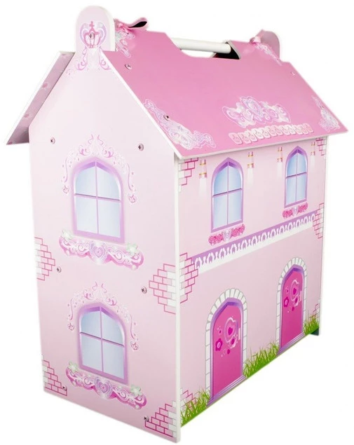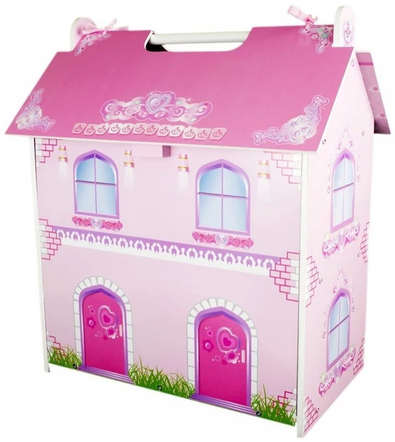 - drewniany domek z otwieraną boczną ścianą, wygodną rączką i otwieranym dachem
