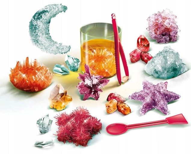 To fascynujące laboratorium ma wszystko, czego potrzebujesz, aby stworzyć niesamowite białe i kolorowe kryształy. Unikalny zestaw do odkrywania chemicznych reakcji soli i tworzenia błyszczących kształtów! Podręcznik prowadzi dziecko przez różne etapy eksperymentów, dzięki czemu mogą one bawić się całkowicie bezpiecznie.