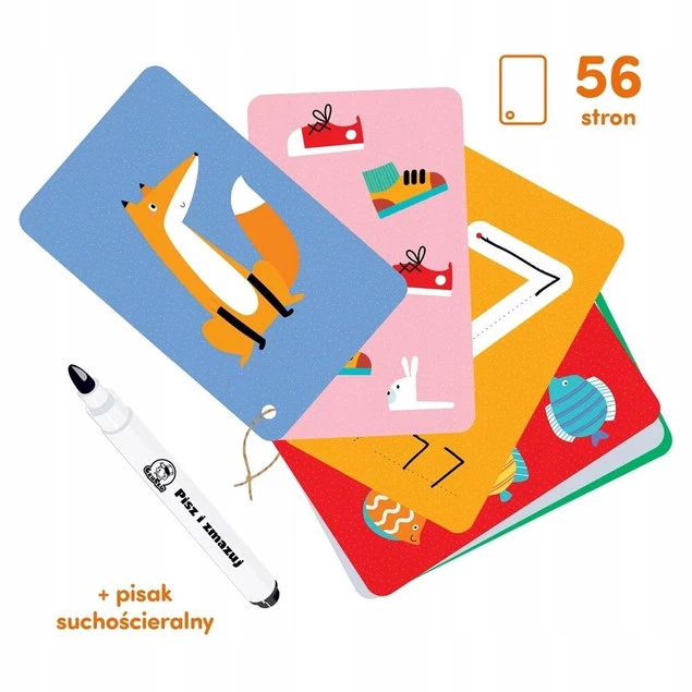 Zabawa z książeczką i pisakiem zmazywakiem to trening małej motoryki, doskonałe ćwiczenie koncentracji, pamięci wzrokowej i logicznego myślenia.
