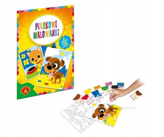 Uwielbiana przez dzieci, artystyczna zabawa malowania piaskiem, polegająca na odsłanianiu kolejno poszczególnych, naciętych elementów obrazka, tak by odkryć klejącą powierzchnię. Odsłonięte elementy posypuje się piaskiem, w kolorze zgodnym ze wzorem lub według własnej wyobraźni, tworząc piękną ilustrację.