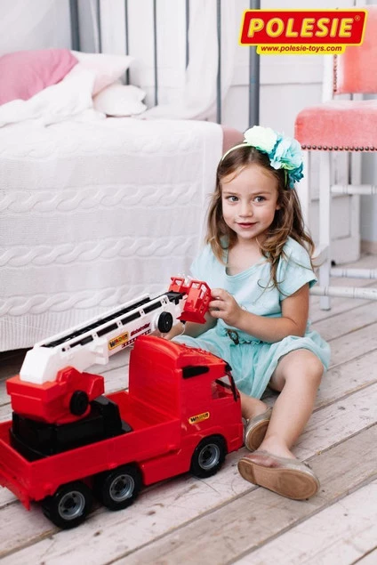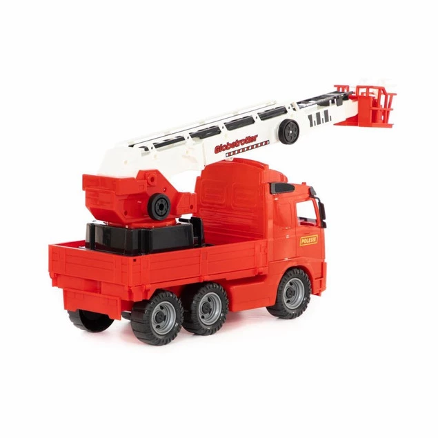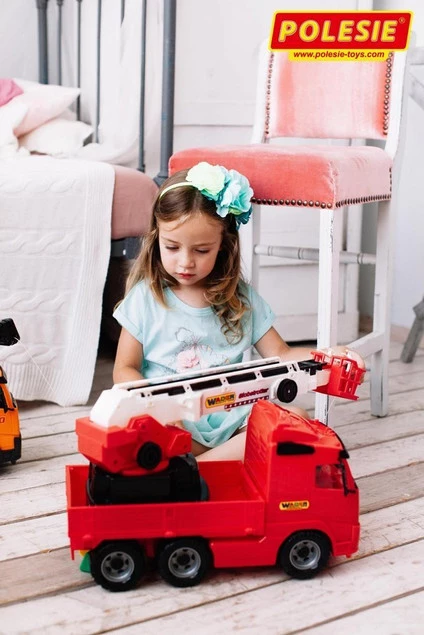Straż pożarna VOLVO to duży pojazd wyposażony w szerokie koła połączone metalowymi osiami. Ich struktura nie jest gładka, co ułatwia jazdę po nierównych powierzchniach. Na naczepie umieszczono drabinę obracającą się wokół własnej osi, którą można unieść i rozsunąć. Na jej końcu znajduje się kosz, specjalnie na figurkę małego bohatera. Otwierane są również burty pojazdu. Dziecko może naśladować pracę prawdziwego pojazdu straży pożarnej. Kabina kierowcy jest oszklona. Użyto w tym celu grubego, przezroczystego plastiku.