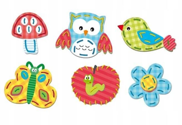 Dzieci mogą swobodnie łączyć ze sobą poszczególne elementy zestawu bądź ubarwiać pojedyncze przez przewlekanie i przeplatanie kolorowych sznurowadeł.