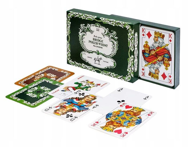Dwutaliowy komplet wyprodukowany przez wiedeńską fabrykę specjalnie z myślą o polskich wielbicielach tego przedwojennego wzoru, dostępnego dotychczas tylko w wersji pojedynczych talii. Są to jedne z najbardziej rozpoznawalnych Piatnikowskich kart, lubiane już przez Piłsudskiego. W dzisiejszych czasach bywają znane jako "Pewexy", od nazwy sklepów, w których gracze mogli zdobyć ten deficytowy za czasów PRL towar. Na awersach piękne figury, na rewersach i opakowaniu charakterystyczne liście dębu. Talie składają się z 55 plastikowanych kart o wymiarach 58 x 89 mm i gramaturze 310. Idealne zarówno do brydża, pokera, remika jak i innych gier.