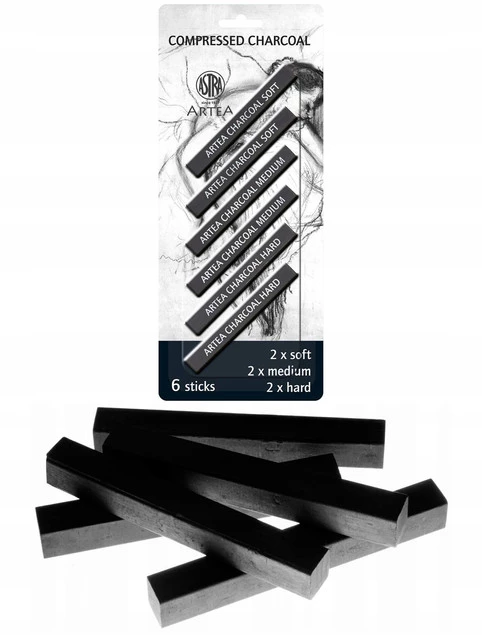 Węgiel rysunkowy prasowany o kwadratowym przekroju (1 x 1 x 8 cm) Idealny do rysowania i szkicowania na różnych powierzchniach. Trzy różne twardości pozwalają uzyskać ciekawe efekty. Odporny na złamania i kruszenie. Dostępny w trzech twardościach: miękki, średni i twardy. Gotowe prace należy zabezpieczyć fiksatywą.