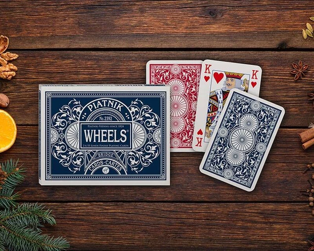 Już są! Wyczekiwane i jak zawsze dopracowane - podwójna (prezentowa!) wersja kultowych kart Piatnika "Wheels" już w sprzedaży! Karty o płótnowanej fakturze, bardzo popularne wśród polskich odbiorców.