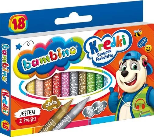 Wysokiej jakości kredki, które towarzyszą dzieciom od pokoleń. Wyróżniają je wyjątkowo intensywne i nasycone kolory oraz doskonałe krycie powierzchni. Idealnie nadają się do rysowania, wypełniania dużych płaszczyzn i wykonywania miękkich przejść pomiędzy kolorami. Kredki Bambino wykonane są z glinki kaolinowej, co nieporównywalnie podnosi ich walory użytkowe względem kredek świecowych, woskowych czy ołówkowych.