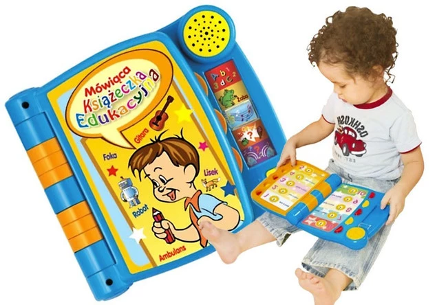 - Rozwija sprawność dłoni i koordynację oko-ręka poprzez przerzucanie stron książki i precyzyjne wciskanie guzików.