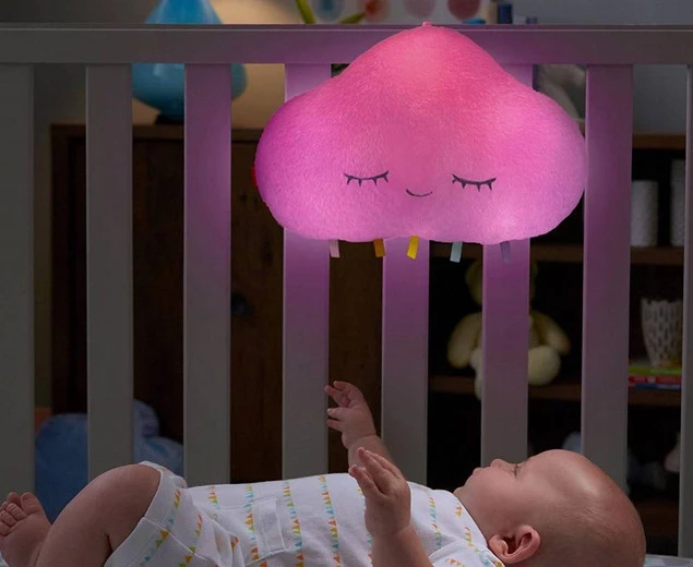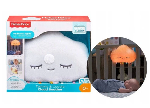 Urocza mięciutka chmurka pomoże uspokajać i utulać Twoje dziecko do snu już od pierwszych miesięcy życia. Chmurkę można łatwo przyczepić do większości łóżeczek, a delikatna muzyka i efekty dźwiękowe ze specjalnej playlisty Ready, Settle, Sleep są zsynchronizowane z pokazem światełek, by tworzyć przytulną atmosferę zapewniającą spokojny sen.