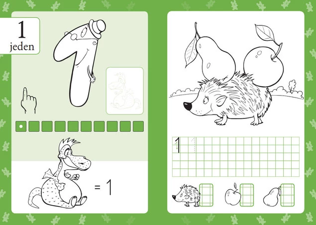 Ćwiczenia krok po kroku wprowadzą dziecko w świat matematyki. Przedszkolak rozwinie wyobraźnię, sprawność manualną i grafomotoryczną, kolorując zabawne rysunki i przyklejając barwne naklejki. Zaś dzięki przejrzystym wskazówkom dotyczącym kreślenia znaków, łatwym działaniom i rymowanym zagadkom pozna cyferki od 0 do 9, nauczy się dodawać i odejmować. Materiał dostosowano do wieku i zainteresowań maluchów, przez co nauka staje się przyjemna i prosta!