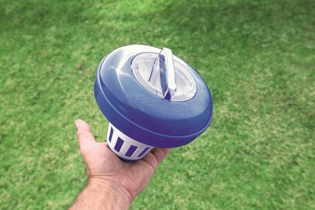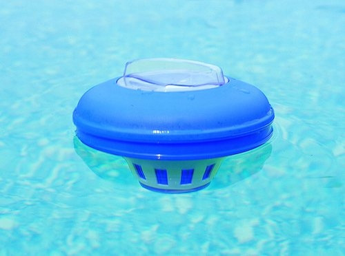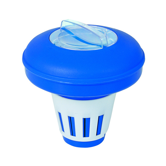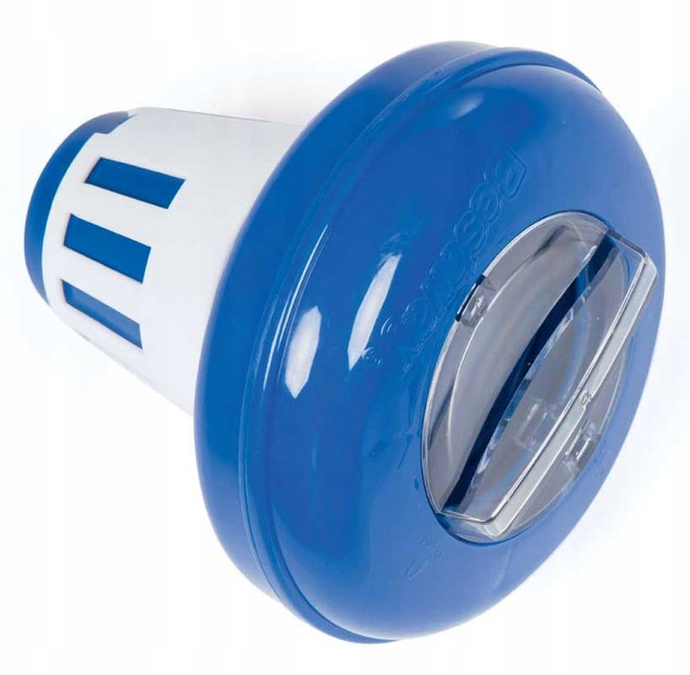 Pływający dozownik może być stosowany z tabletkami 2,5 cm lub 7,6 cm. Dozowanie środka chemicznego do basenu należy ręcznie sterować pierścieniem dozującym. Chemię należy włożyć do środka, a następnie wrzucić pływak do wody. Wykonanie pływającego dozownika z tworzywa odpornego na promieniowanie UV pozwala na jego stosowanie przez wiele sezonów, a jego lekkość powoduje, że swobodnie dryfuje, rozpuszczając środki chemiczne, dzięki czemu rozprowadza je po całej powierzchni.