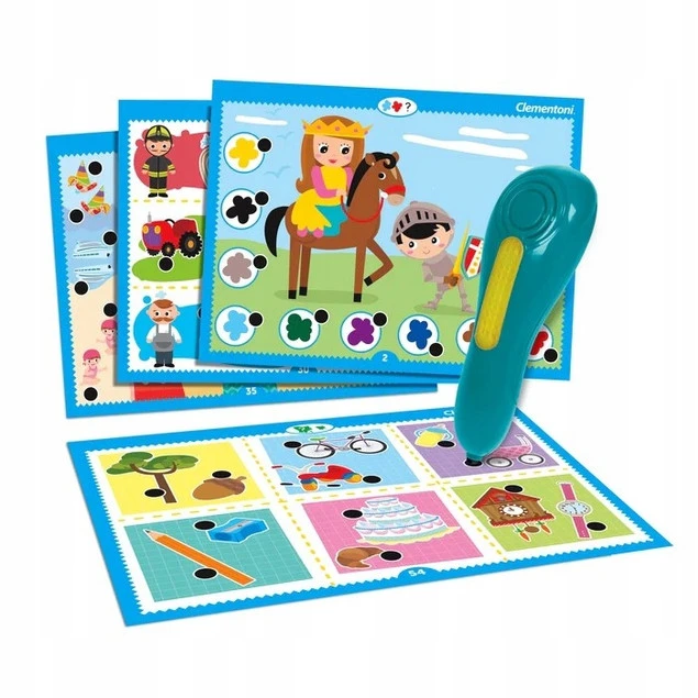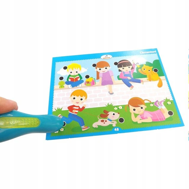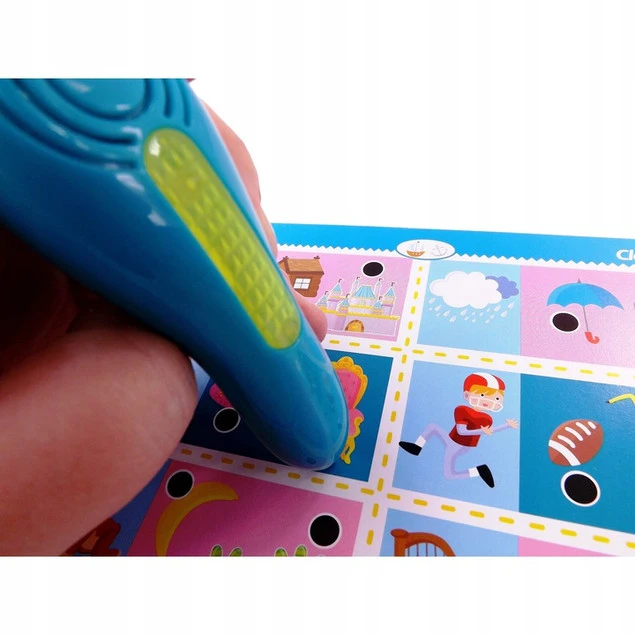 • Mówiący elektroniczny długopis prowadzi dzieci przez grę, informując je, czy udzielona przez nie odpowiedź jest prawidłowa.