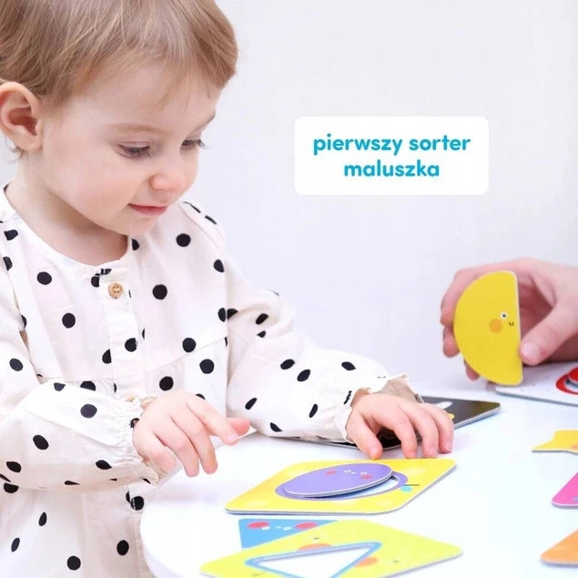 • Edukacyjny zestaw sprawdzi się jako pierwszy puzzlowy sorter kształtów dla malucha. Składa się z dużych tabliczek z wyjmowanymi elementami. Z
