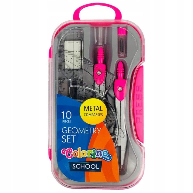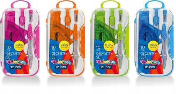 Złóż zapytanie o cenę hurtową produktu |Zestaw Geometryczny 10 Elementów Cyrkiel Ołówek Linijki Ekierka Colorino