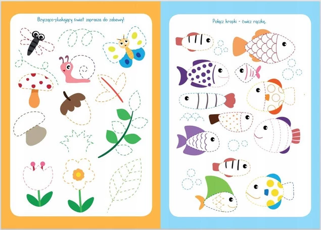 Rozbrykane zwierzaczki, fikuśne kształty i przeróżne smaczki. A strony barwne, niepowtarzalne i wyjątkowe. Rozgrzejmy rączkę. Nauczmy się estetyki i precyzji. Kolorujmy, rysujmy, ozdabiajmy i się bawmy...