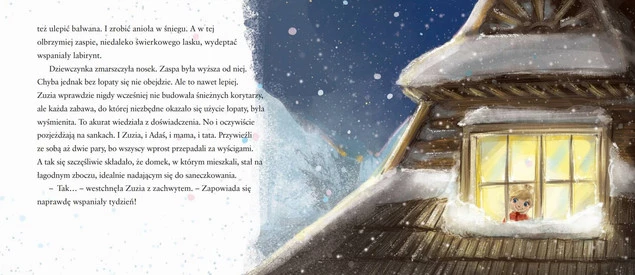 Zuzia stała z noskiem przyklejonym do okna przytulnej góralskiej chaty i w jej główce aż roiło się od pomysłów na pyszną zabawę! Na dodatek czekały na nią... narty, kochani, narty! Oczami wyobraźni już sięgała po Puchar Debiutanta, jednak okazało się, że małym narciarzom lubią towarzyszyć przeróżne koziołki, wywrotki i plątaninki. Zaś w mlecznej mgle i kopiastych zaspach łatwo się zgubić, szczególnie gdy stoją za tym jakieś czary...
