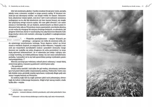 Przygnębiający jesienny krajobraz staje się tłem dla przerażających wydarzeń. Jeden z ostatnich powstańców styczniowych wiozący broń zostaje zamordowany przez oddział rosyjskich żołnierzy. Jego ciało rozszarpują ptaki, a dobytek grabi chłop z pobliskiej wioski. Scena nie tylko przyprawia o dreszcze, ale jest oskarżeniem tych, którzy odpowiadają za ciemnotę i nędzę ludu.