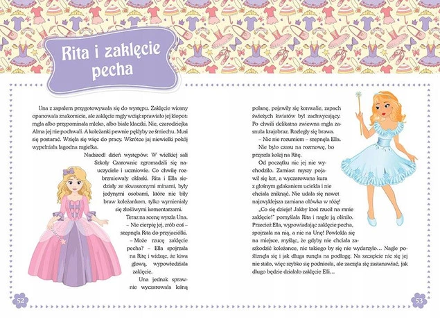 Przedstawiamy książeczkę, która z pewnością spodoba się każdej dziewczynce! Znajdują się w niej krótkie, ciekawe opowieści, pełne motywów i tematów uwielbianych przez małe czytelniczki - piękne historie o przyjaźni, wzruszające opowieści o miłości, współpracy i wspólnej walce ze złem. Są tu więc piękne królewny i księżniczki, dobre wróżki, złe czarownice, dzielni książęta i królewicze, kucyki, pegazy, a także zwyczajne dziewczęta. Najważniejsze jednak, że wszystko zawsze dobrze się kończy! Dziewczynki nie będą mogły rozstać się z tą książką!