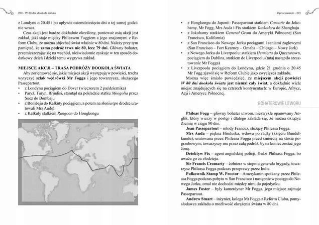 ✔Wydanie W 80 dni dookoła świata kompletne bez skrótów i cięć w treści. W tym wydaniu znajdziesz odpowiedzi na pytania z podręcznika - "pewniak na teście", czyli wskazanie zagadnień, które zwykle pojawiają się w pytaniach z danej lektury we wszelkich testach sprawdzających wiedzę, a także w podręcznikach i na klasówkach. Książka zawiera pełen tekst lektury. Na końcu książki zamieszczono opracowanie, w którym znajduje się bardzo szczegółowe streszczenie oraz drugie skrócone, ułatwiające szybkie przygotowanie się przed lekcją. Opracowanie zawiera ponadto plan wydarzeń, wnikliwie wyjaśnioną problematykę oraz szerokie charakterystyki bohaterów.