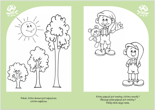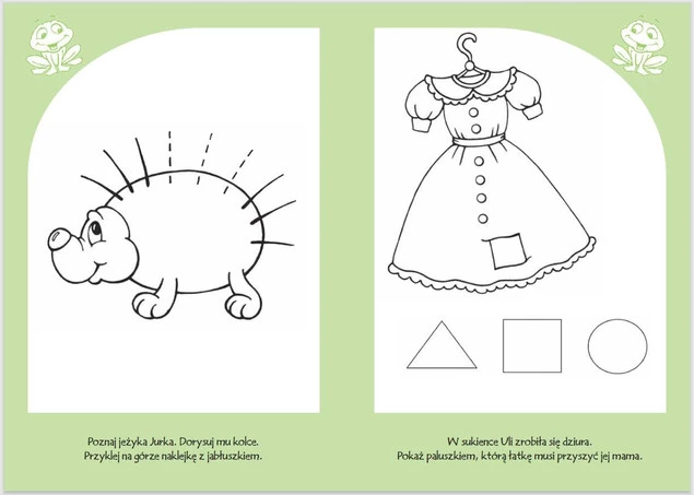Możliwość kolorowania, uzupełniania i wklejania naklejek daje dodatkową satysfakcję i radość z samodzielnego wykonania ćwiczeń.